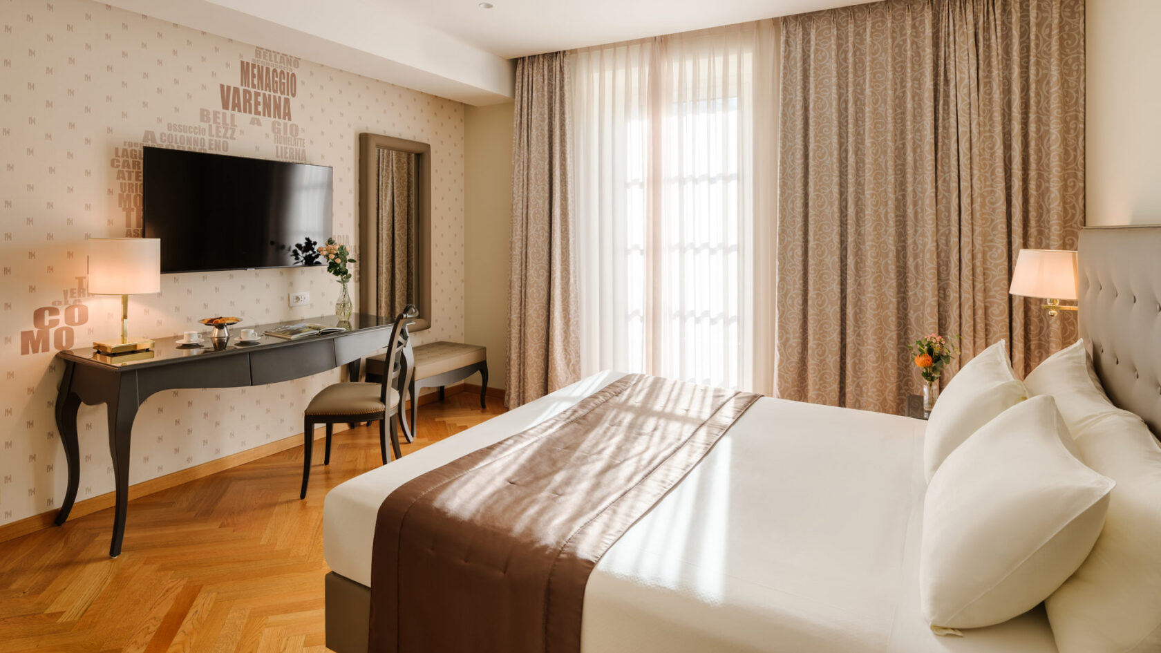 Abundant space and generous windows ensure an airy and sophisticated ambience accentuated by parquet floors and marble bathrooms. Comfortably sleeping up to three people, the rooms are perfect for a reinvigorating stay on the shores of Lake Como.