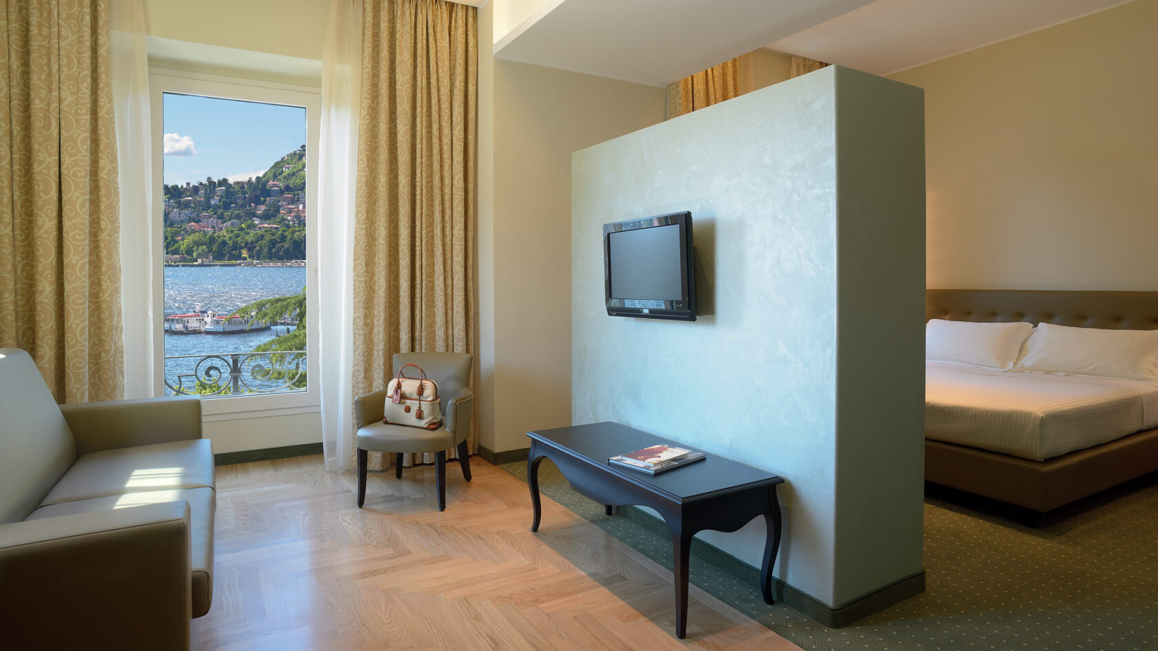 Con una disposizione che separa la zona notte dal soggiorno tramite una raffinata parete separé, le Junior Suite del Palace Hotel si caratterizzano per spazi ampi e ben definiti. Gli interni sono arricchiti da finiture di pregio e comfort di alto livello, come le vetrate insonorizzate e i bagni spaziosi con vasca e doccia separata.