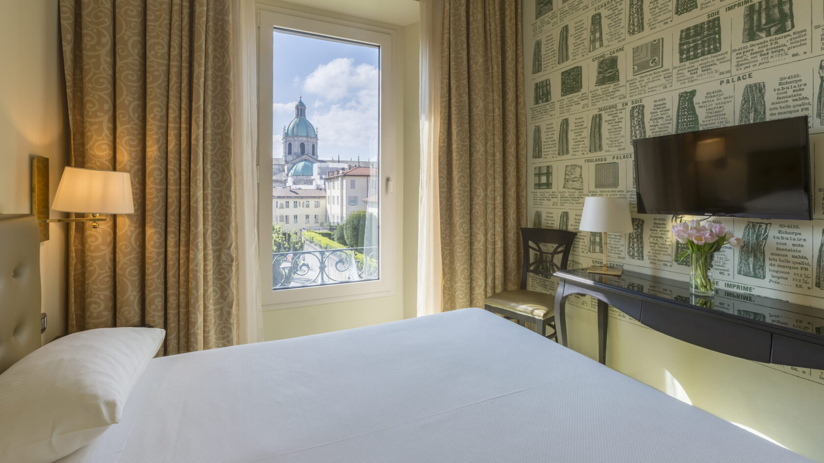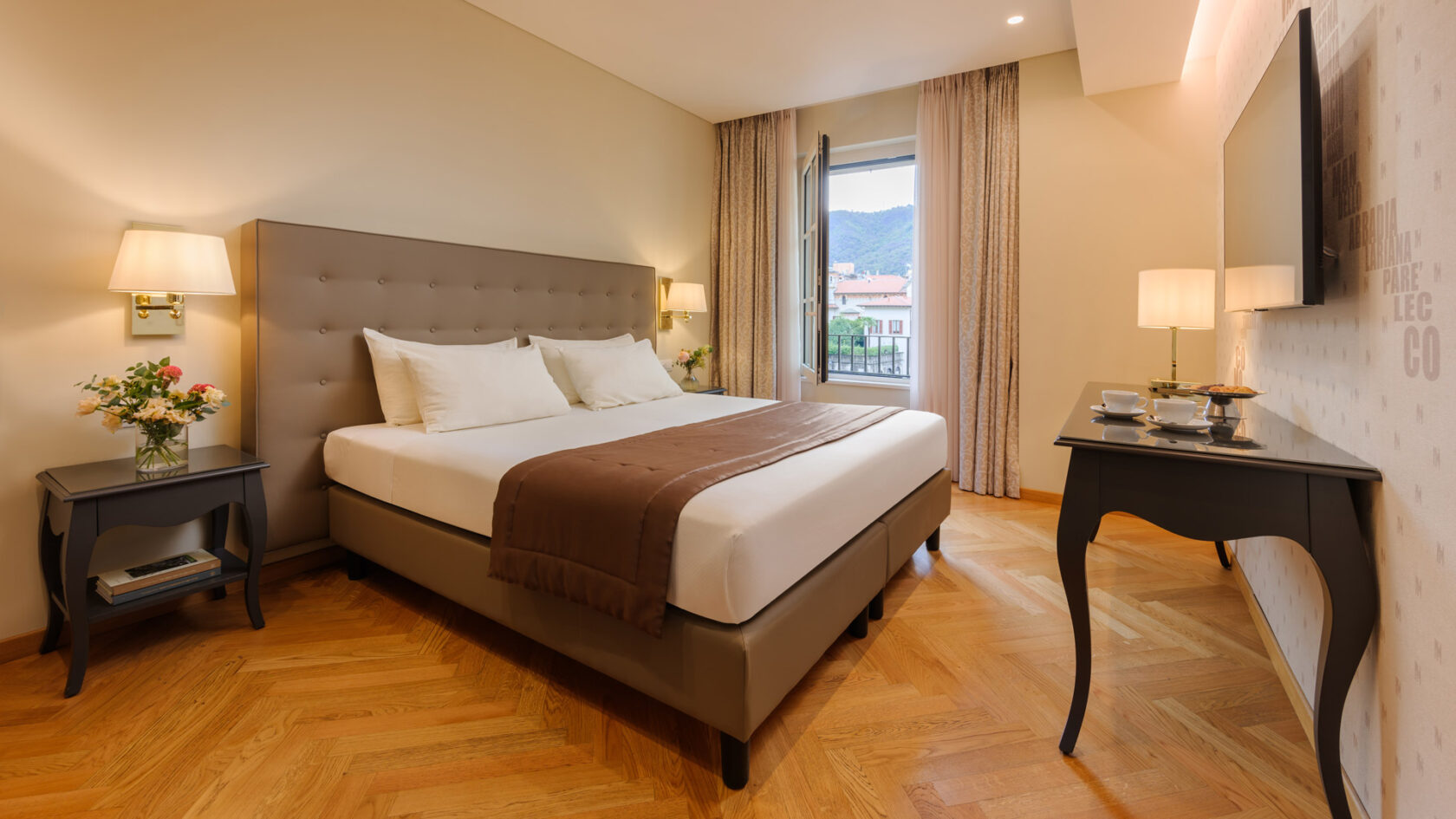 Con una vista privilegiata sul Duomo di Como, apprezzabile dalle ampie finestre che illuminano la stanza, le due camere Executive del Palace Hotel costituiscono una soluzione confortevole per due persone. Situate nella storica ala Plinius, le camere si caratterizzano per spazi generosi e ambienti riposanti, dove dominano tonalità raffinate di beige e verde.